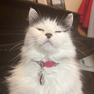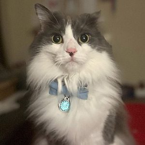 Millie was a free Craigslist kitten, the last of her litter, adopted back in 2010. It's surmised that she's half Mainecoon and half Persian because she's VERY fluffy. She is sassy, snappy, loves being admired from afar, and bonds by having staring contests. Millie will tolerate limited affection, but this tolerance goes down when at peak fluff. She has too much fur! So every summer she gets a lion shave. She loves feeling light and free and gets extra playful without her full coat. Her favorite activity is running up and down the stairs for treats and partaking of catnip on occasion. She snores while she sleeps, and is prone to nightmares. For 12 years it's been just Millie and Deanna, and we hope she makes it to 20!